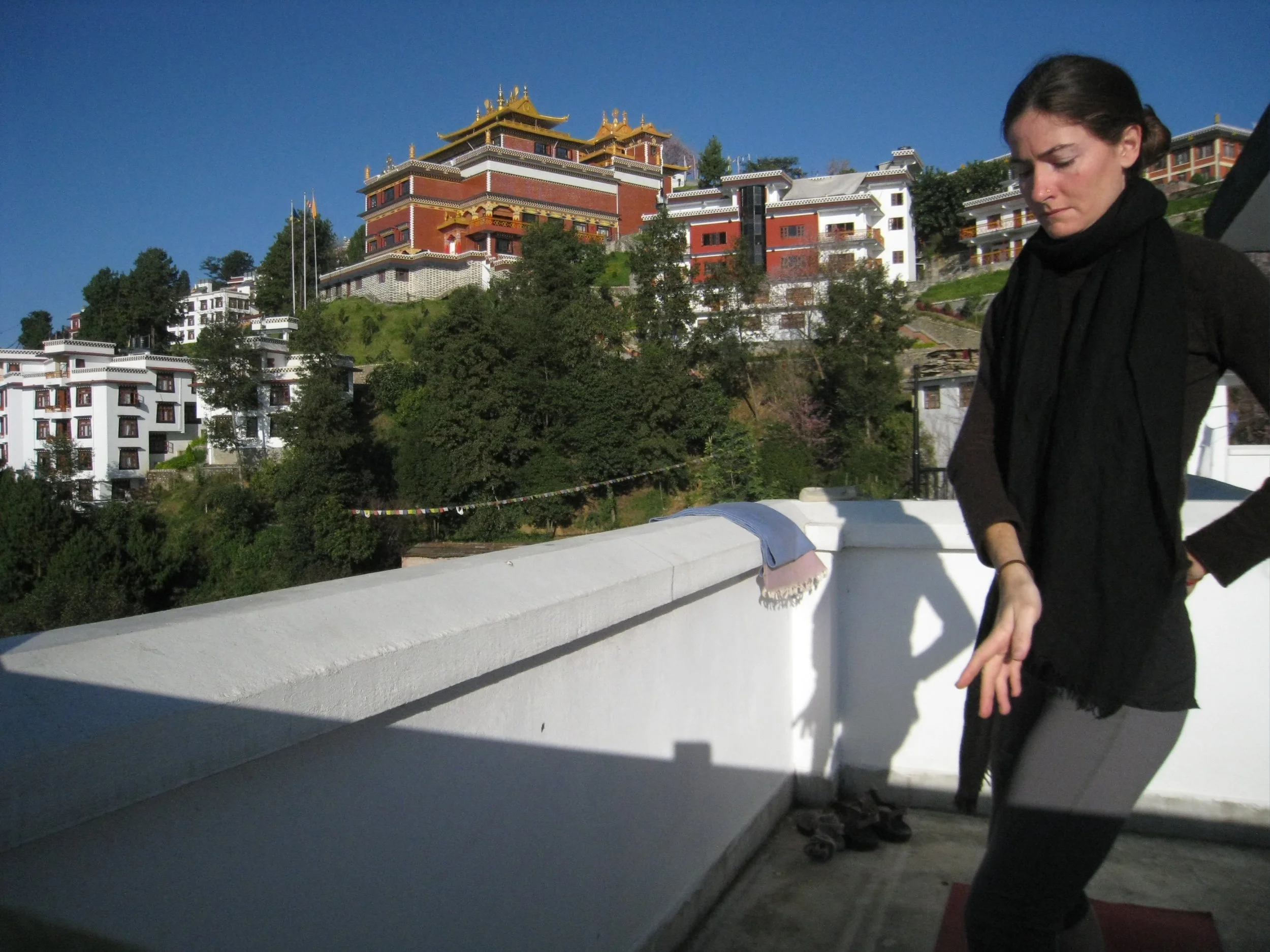 Morning Tai qi on the rooftop of the Namobuddha clinic